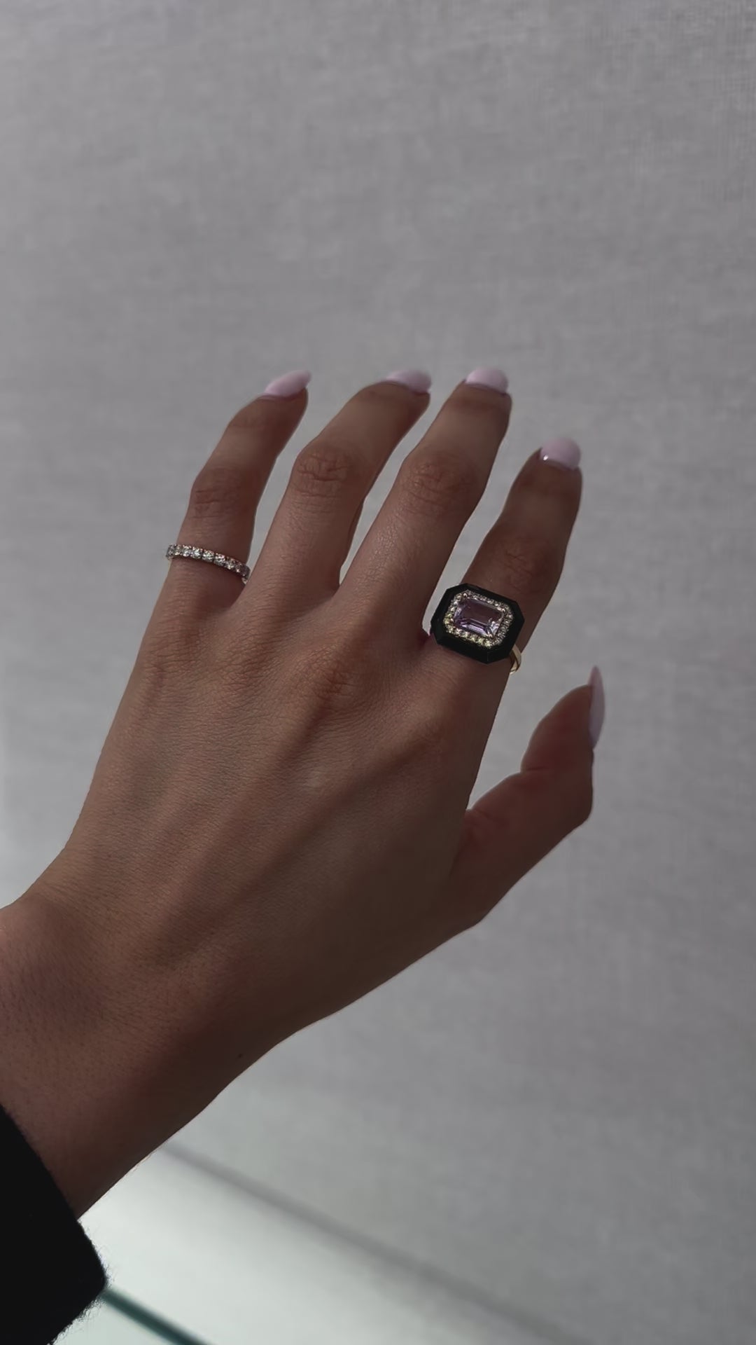 18k Black Onyx with Purple Amethyst Ring